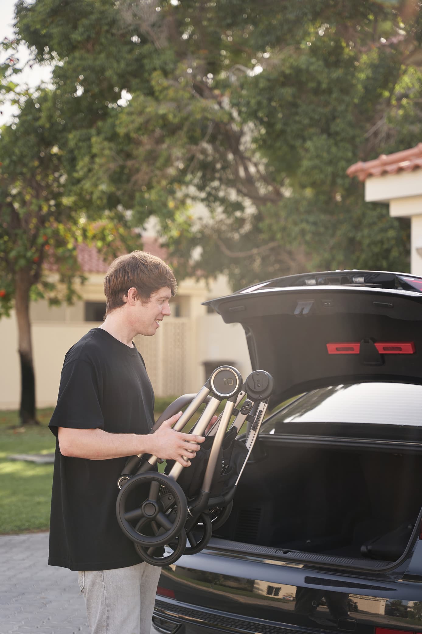 Auch mit der Babywanne montiert lässt sich der Wagen einklappen.