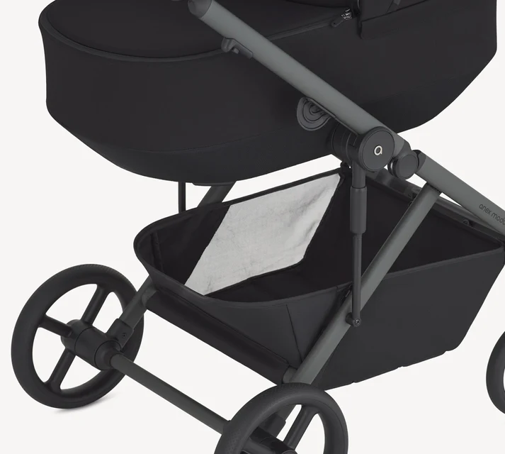 Großer, geräumiger Korb, der unterwegs als großzügige Ablage dient. Egal ob Einkauf, Babyutensilien oder Spielzeug – hier ist genug Stauraum vorhanden.