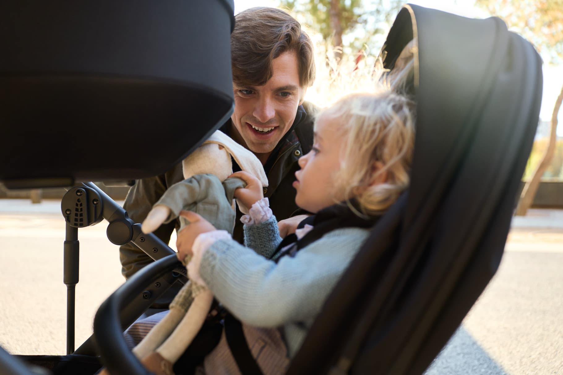 Egal ob zu Mama oder in die Fahrtrichtung – dein Kind kann die Fahrt angenehm genießen. Die Sitze sind flexibel, denn die Blickrichtung am Gestell lässt sich mit nur einem Klick ändern.
