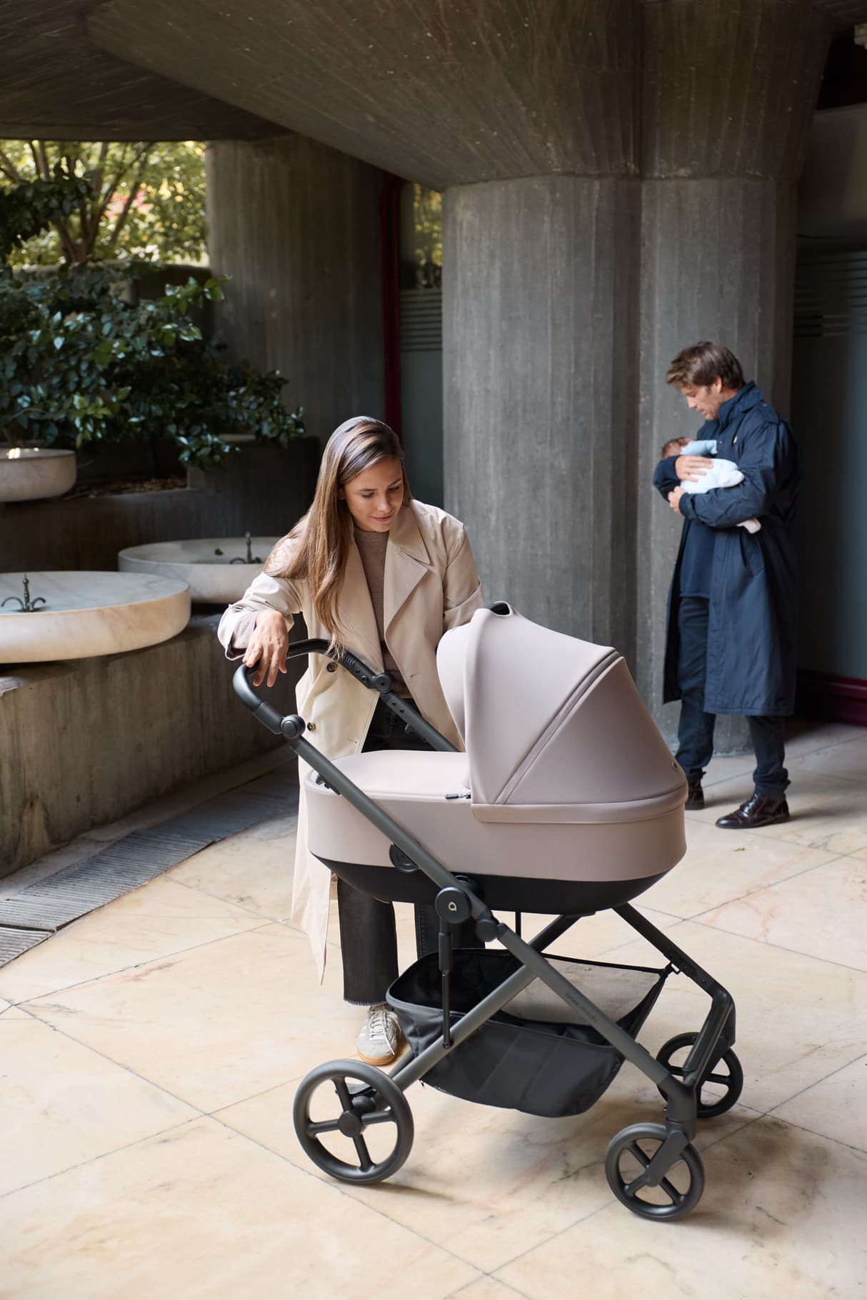 Die Babywanne ist die erste Einheit, die Sie am Kinderwagen verwenden werden. In der Babywanne liegt Ihr Baby etwa 6 Monate lang. Danach lässt sie sich leicht zusammenfalten und schnell im Schrank verstauen.