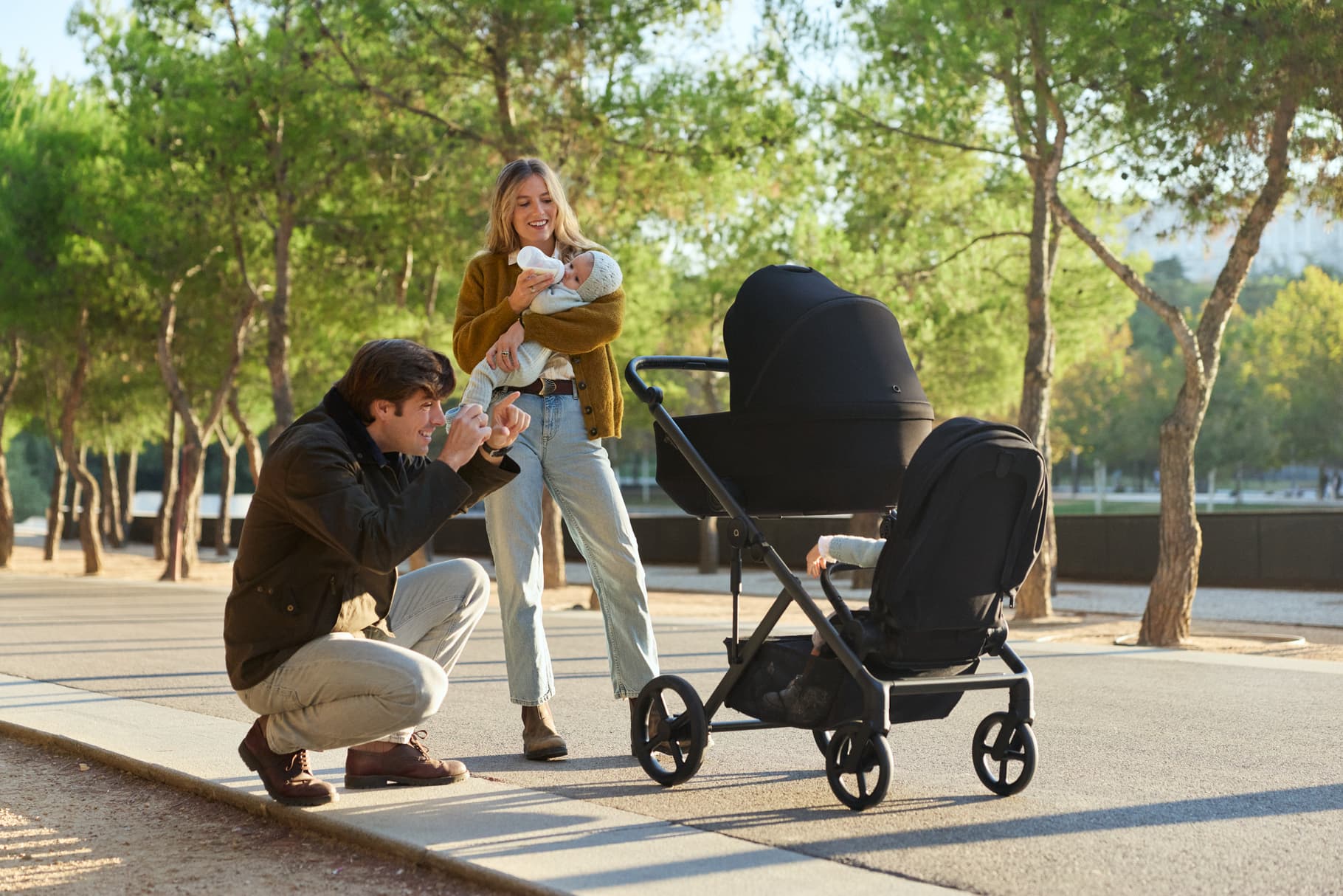 Ein flexibler Zwillingskinderwagen für die gesamte Familie - umbaubar zum Einzelkinderwagen, Geschwister- oder Bollerwagen.