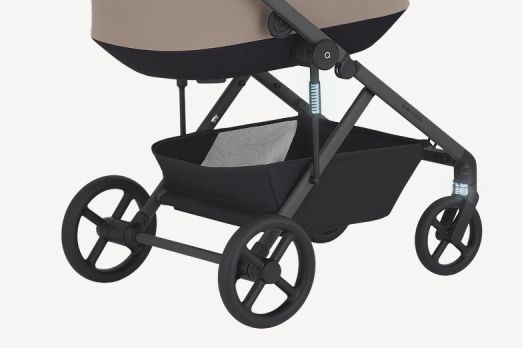Großer, geräumiger Korb, der unterwegs als großzügige Ablage dient. Egal ob Einkauf, Babyutensilien oder Spielzeug – hier ist genug Stauraum vorhanden.