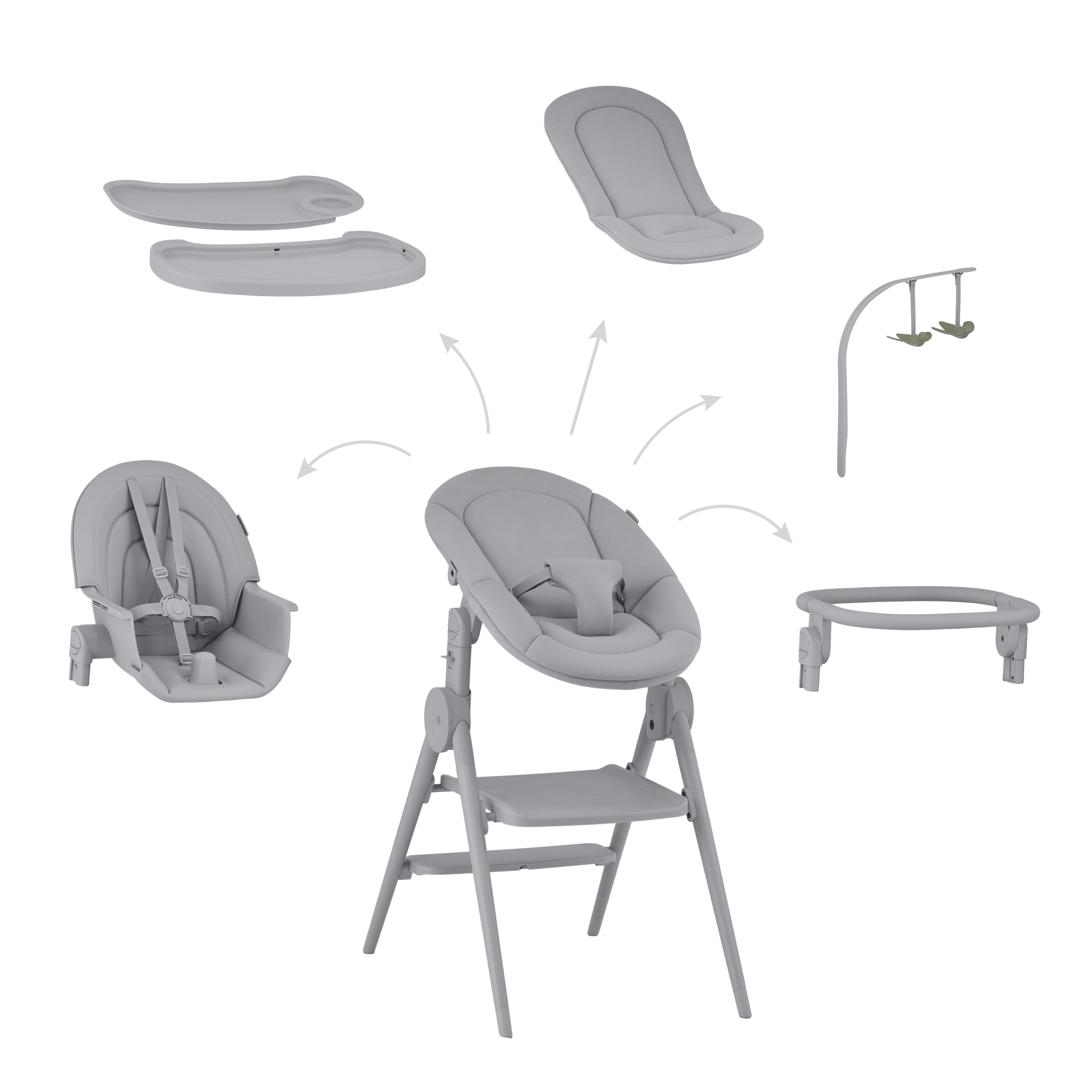 Vielfältig einsetzbar – je nach Entwicklungsphase als Liegeschale, Hochstuhl zum Füttern oder Lernturm
