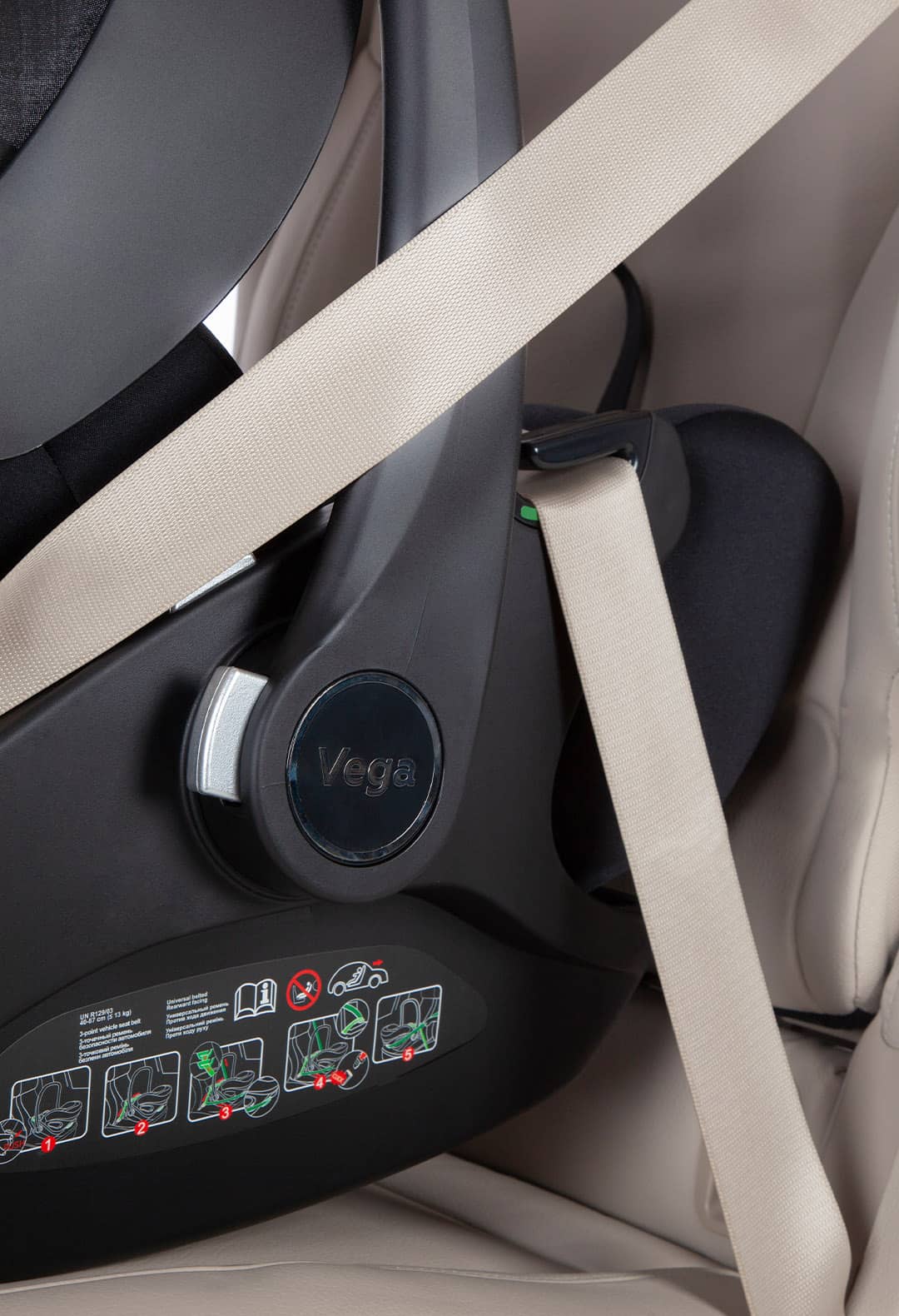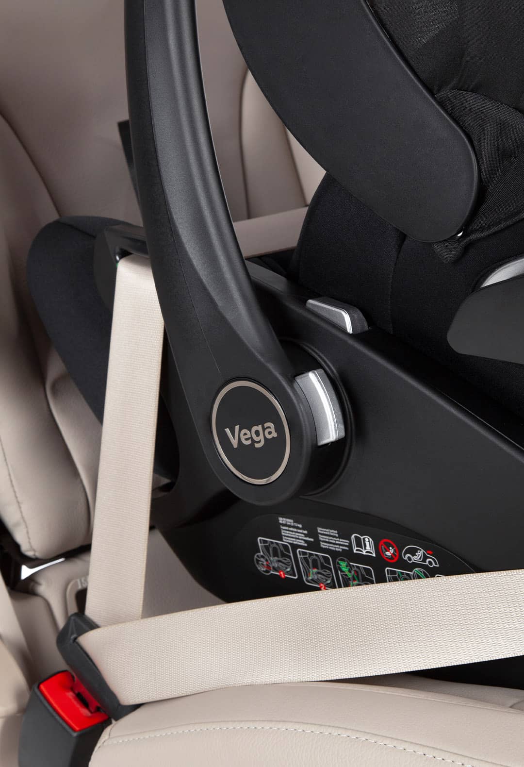 Die Vega ISOFIX-Basis sorgt für noch mehr Sicherheit und Komfort im Alltag. Sie wird fest mit dem Fahrzeug über das ISOFIX-System und einen stabilen Stützfuß verbunden – ganz ohne Anschnallen mit dem Autogurt.