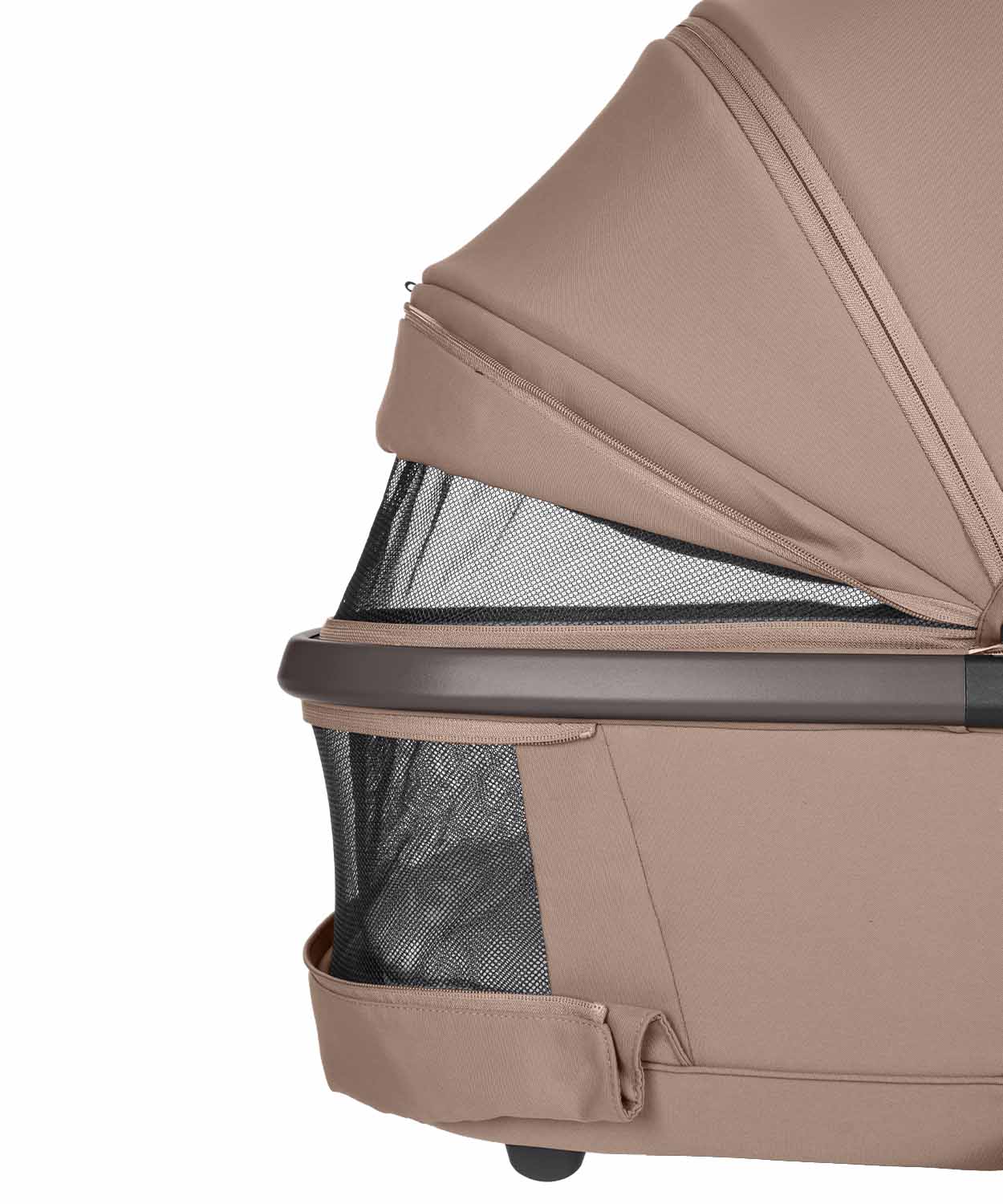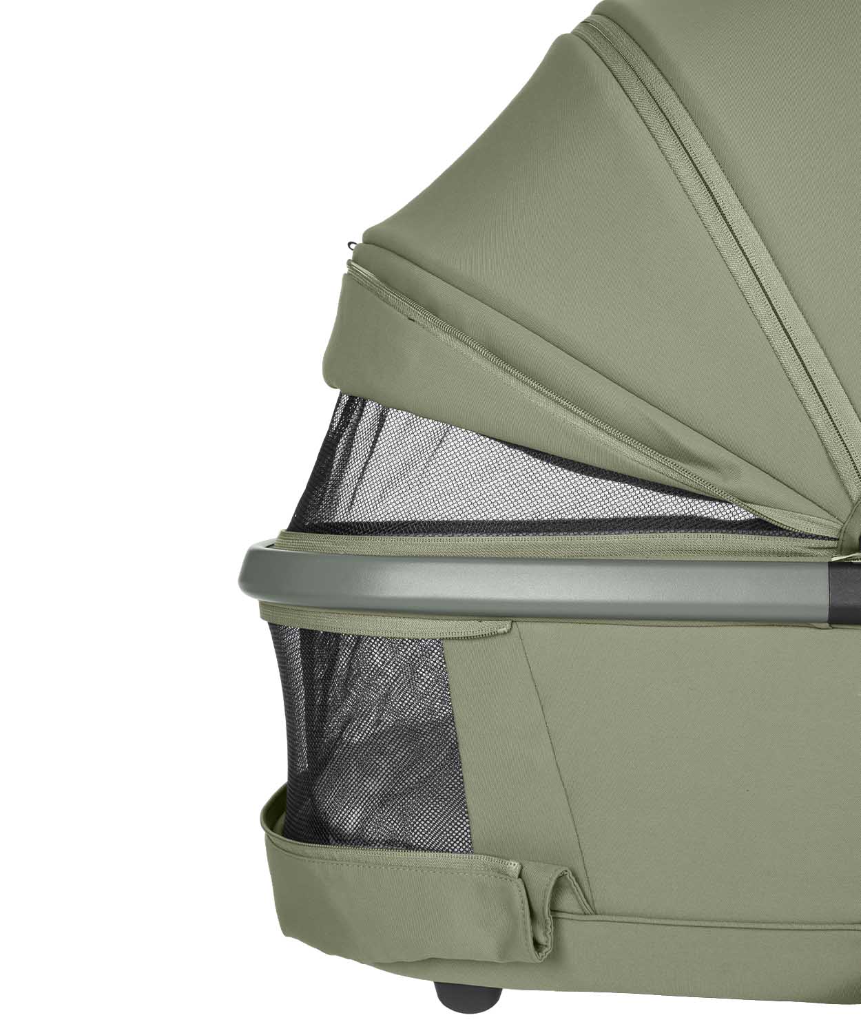 Die Babywanne ist durch drei Fenster mit Netzstoff belüftet. Die Stoffe sind mit magnetischen Positionsverschlüssen ausgestattet, die eine Regulierung der Luftstromintensität ermöglichen. Bei kühlerem Wetter sind die Lüftungsfenster vollständig geschlossen.