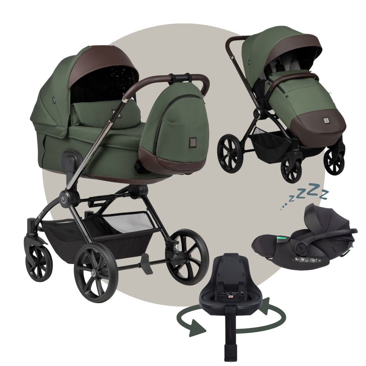 TUTIS GIO | MEGASET Kinderwagen mit Babywanne + Sportwagen + Autoschale + Isofix drehbar + Wickeltasche