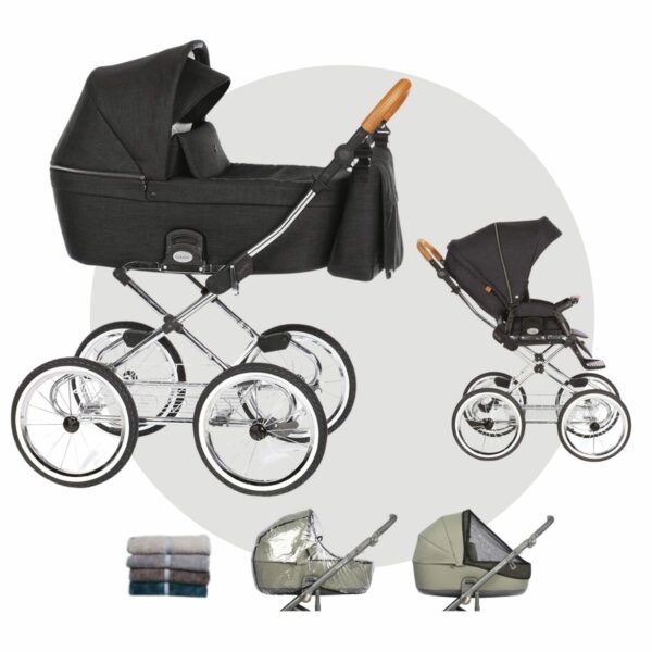 - Design: Der Retro Style wird bei diesem hochwertigen Kinderwagen neu interpretiert. Zertifizierte Materialien von höchster Qualität garantieren eine optimale Performance. Mit dem umfangreichen Zubehör verleihen Sie Ihrem Kinderwagen einen individuellen Touch in bester Retro-Manier.