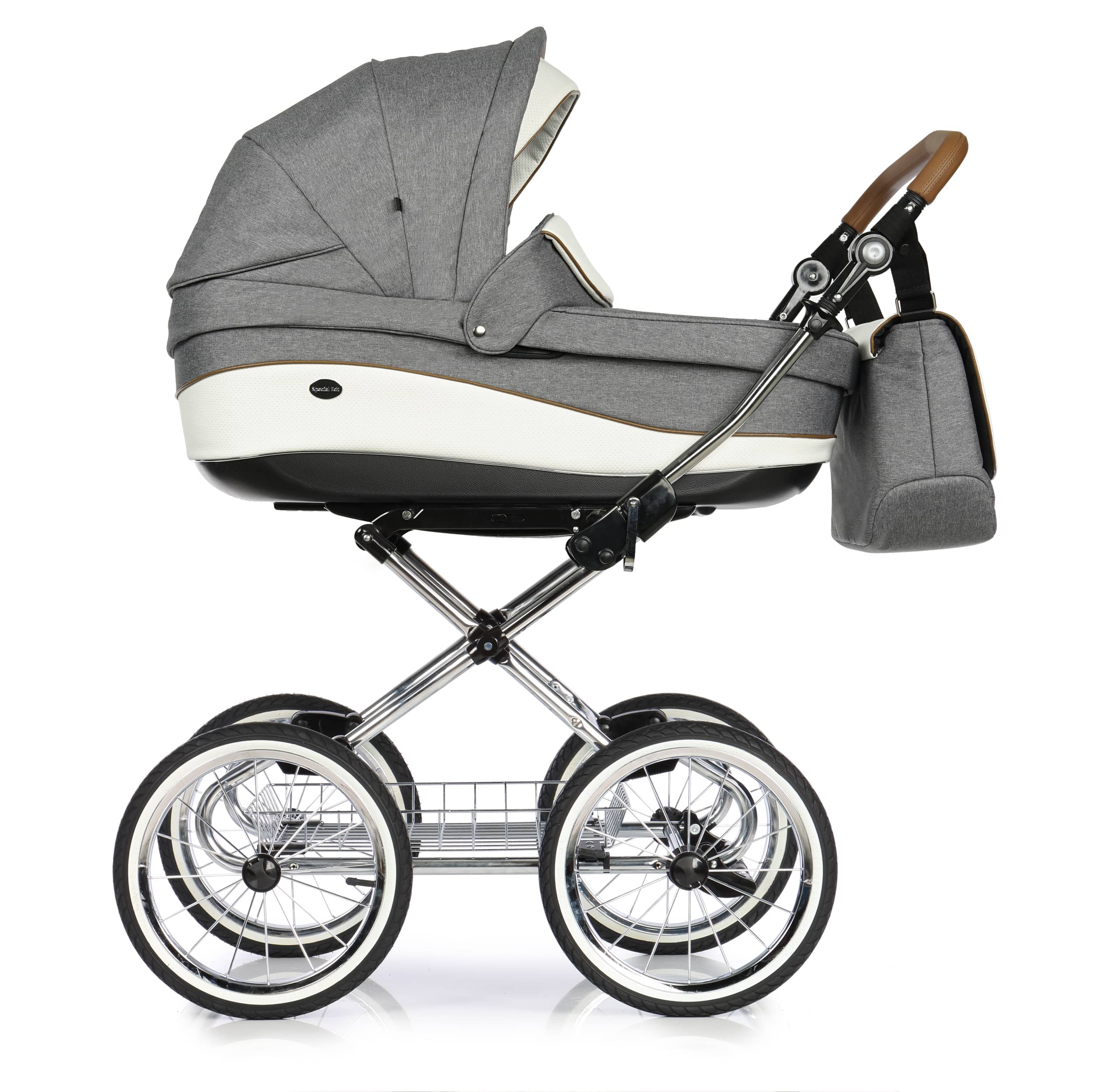Ein echtes Lieblingsstück für alle Freunde des Romantischen und Nostalgischen. Dieser Kinderwagen verzaubert mit seinem gelungen Retro Look. Die Babywanne wurde ausgesprochen geräumig gestaltet. Ab dem ersten Moment kann sich Ihr kleiner Schatz darin so richtig wohlfühlen. Der hohe Qualitätsanspruch zeigt sich bei der Verarbeitung, die mit schönen und liebevoll ausgesuchten Details einhergeht.