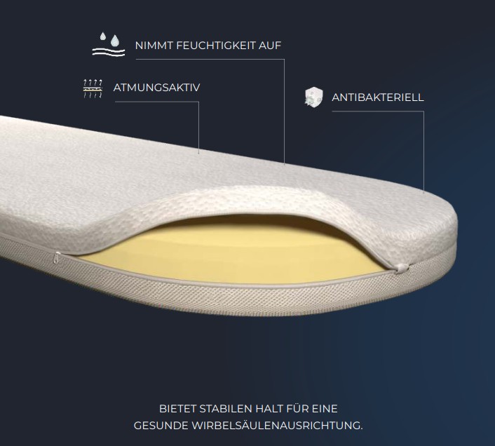 Dank der innovativen THERMO-COT™-Technologie wird das ideale Mikroklima geschaffen, um Feuchtigkeit zu verhindern und für einen ruhigen Schlaf zu sorgen.