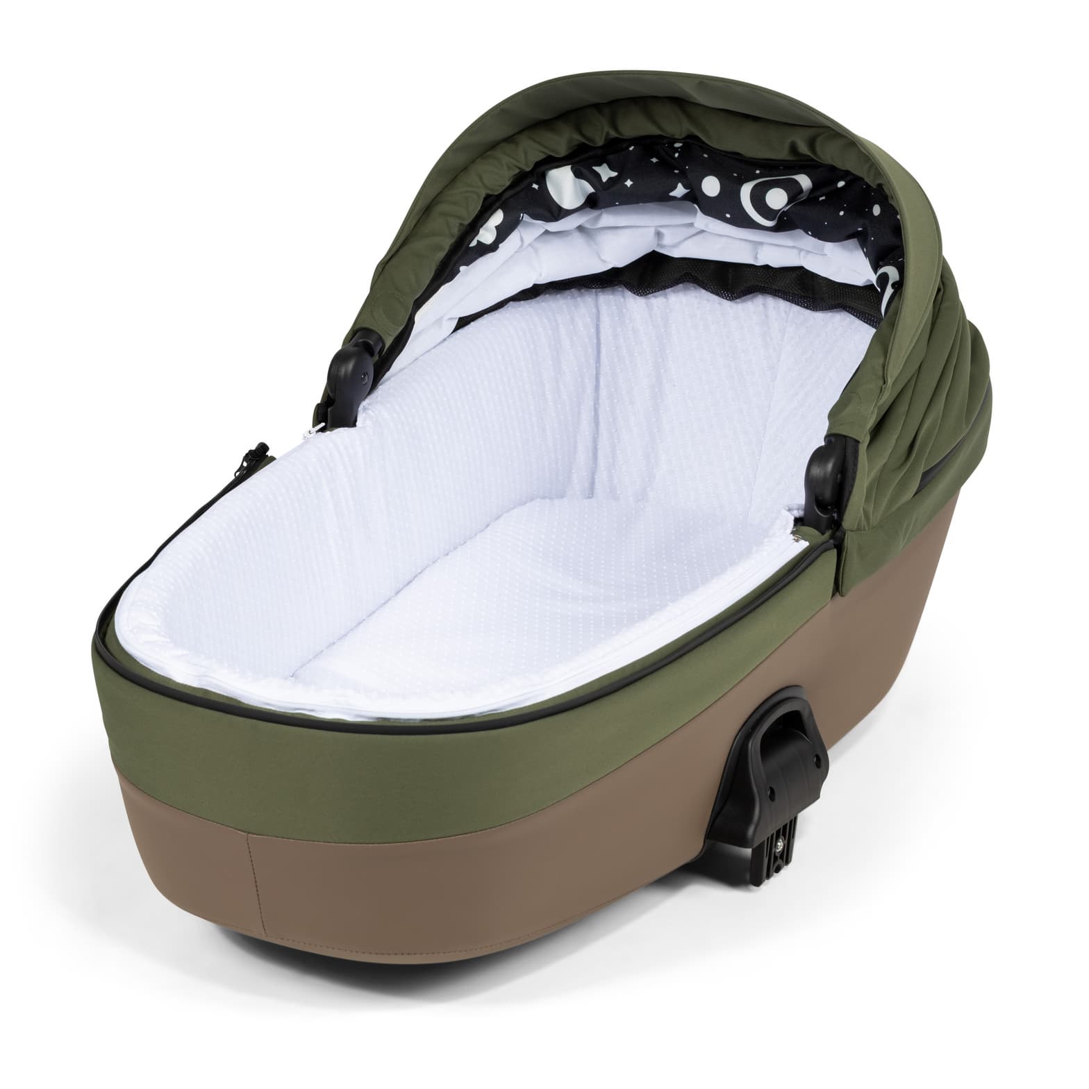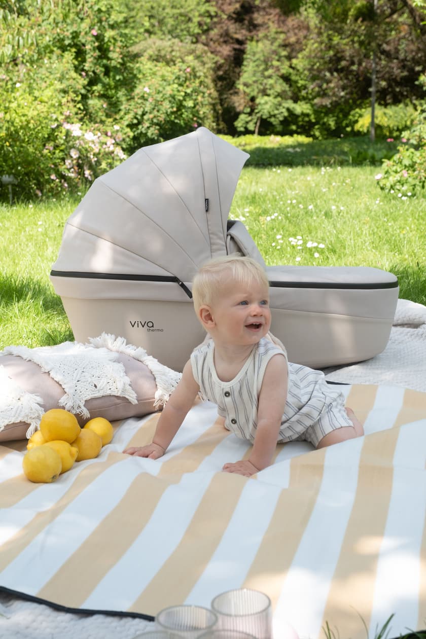 Die stabile und geräumige Liegewanne bietet jede Menge Bewegungsfreiheit für Ihr Baby. Ihr Kind liegt optimal von außen geschützt. Das große Verdeck mit eingearbeitetem UV-Schutz und der mitgelieferten Beindecke garantiert, dass Wind und Wetter keine Chance haben. Das Verdeck lässt sich einfach hoch und zurückklappen. Die Liegewanne kann in Sekundenschnelle auf dem Gestell montiert werden.