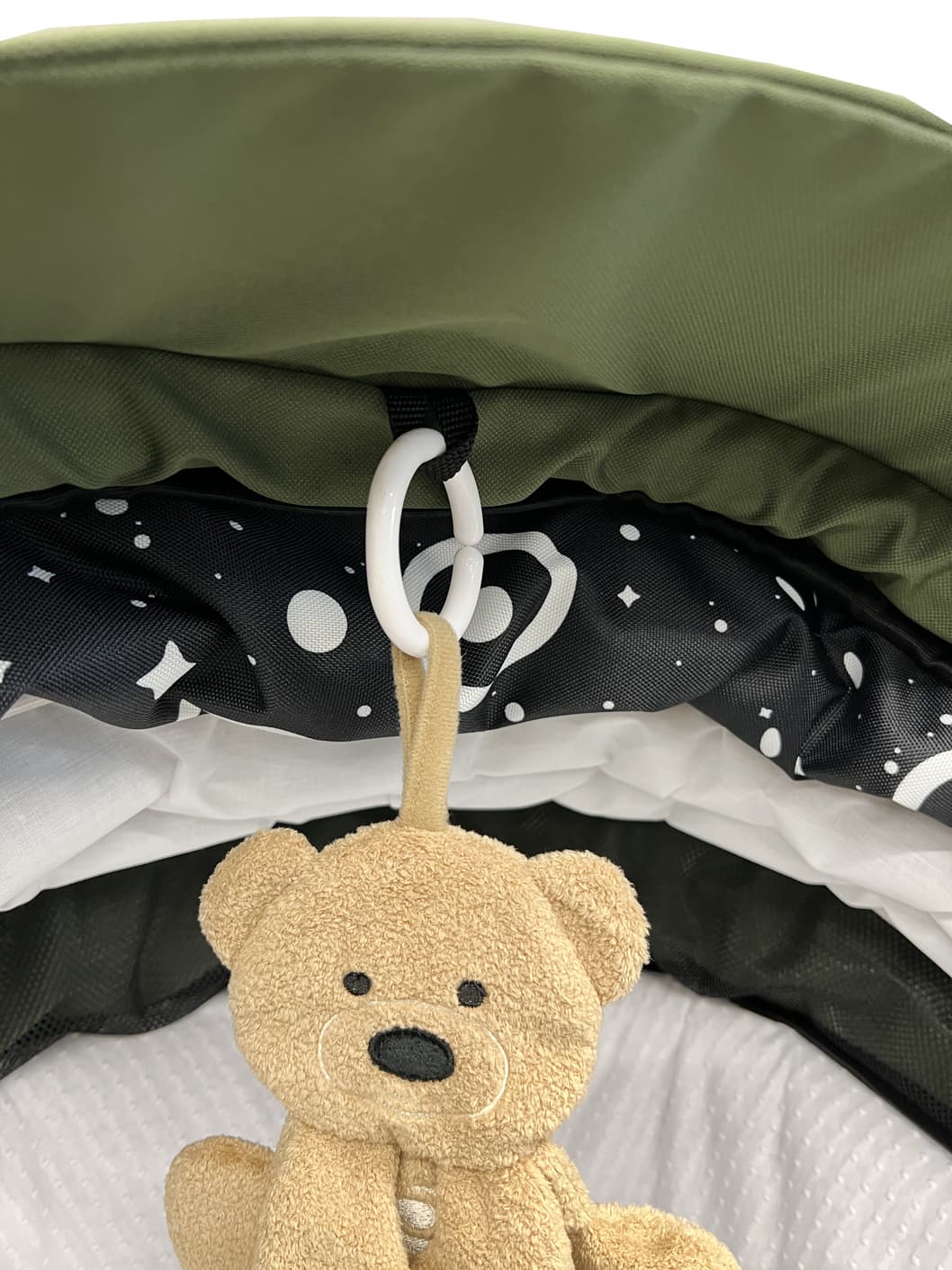 Der atmungsaktive Bezug aus Bambusfasern ist umweltfreundlich, sanft zur empfindlichen Haut von Neugeborenen, zugleich atmungsaktiv und feuchtigkeitsabsorbierend. Er reduziert das Risiko von Hautirritationen und ist pflegeleicht.