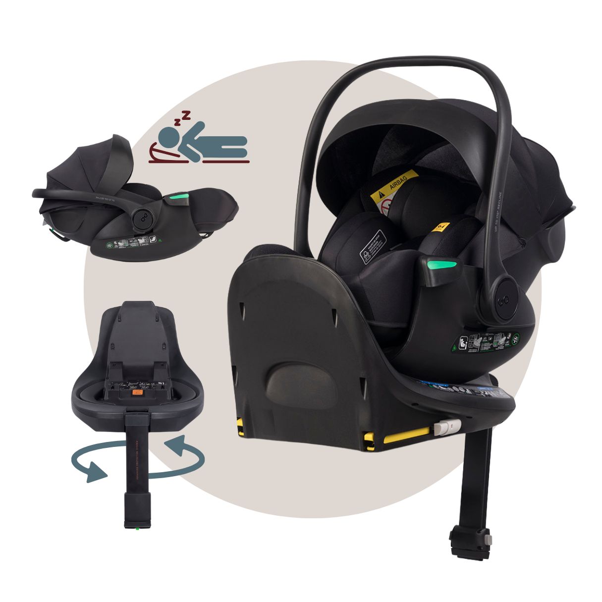 - Bequemes Anschnallen: Einfach die Autoschale seitlich zur Tür drehen, das Kind sicher platzieren und dann zurückdrehen.