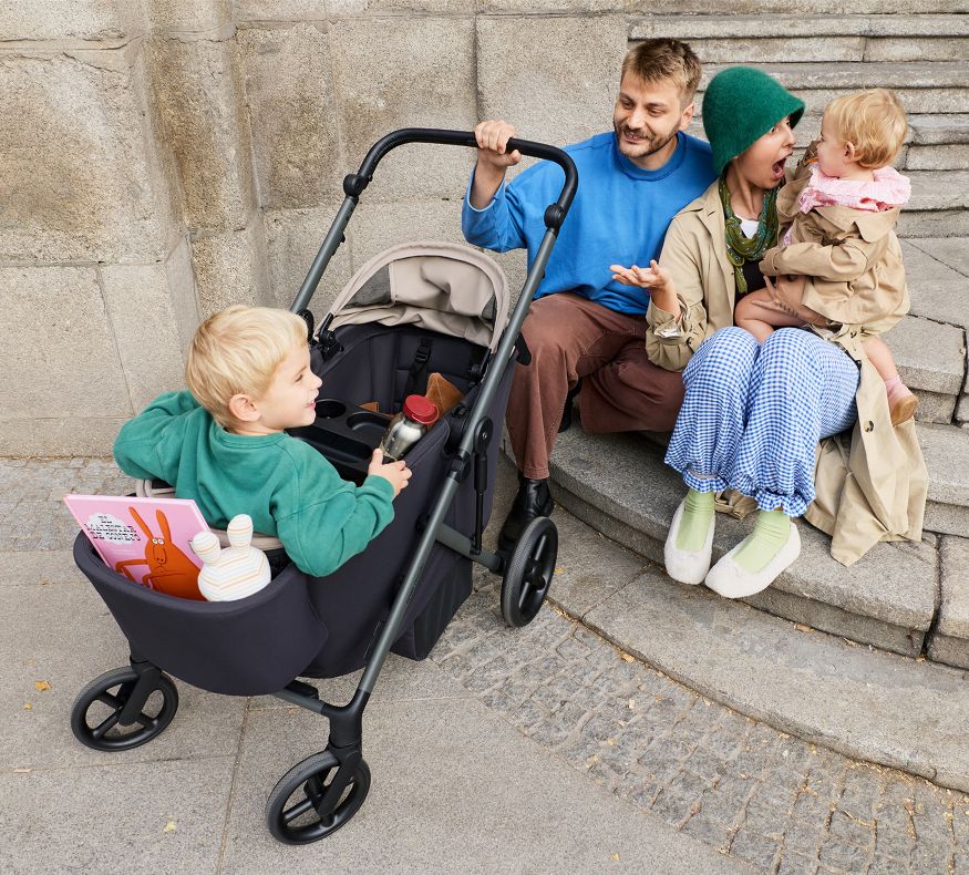 Ein flexibler Zwillingskinderwagen für die gesamte Familie - umbaubar zum Einzelkinderwagen, Geschwister- oder Bollerwagen.