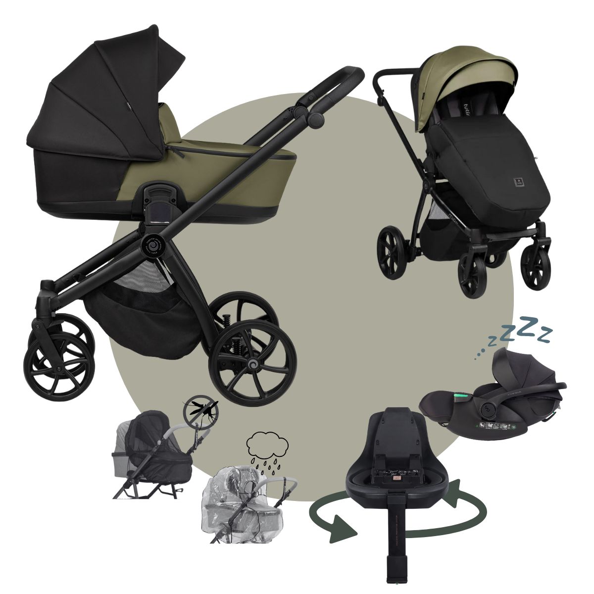 für Transport auf dem Kinderwagen & im Auto, drehbar