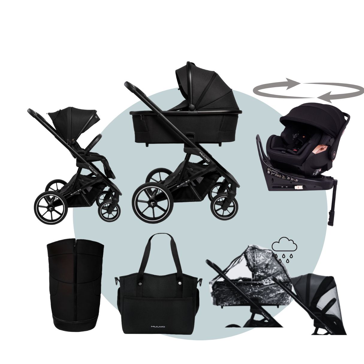 MUUVO Slick 2.0 | Kinderwagen MEGASET mit Babywanne + Sportsitz + Autoschale +Isofix drehbar