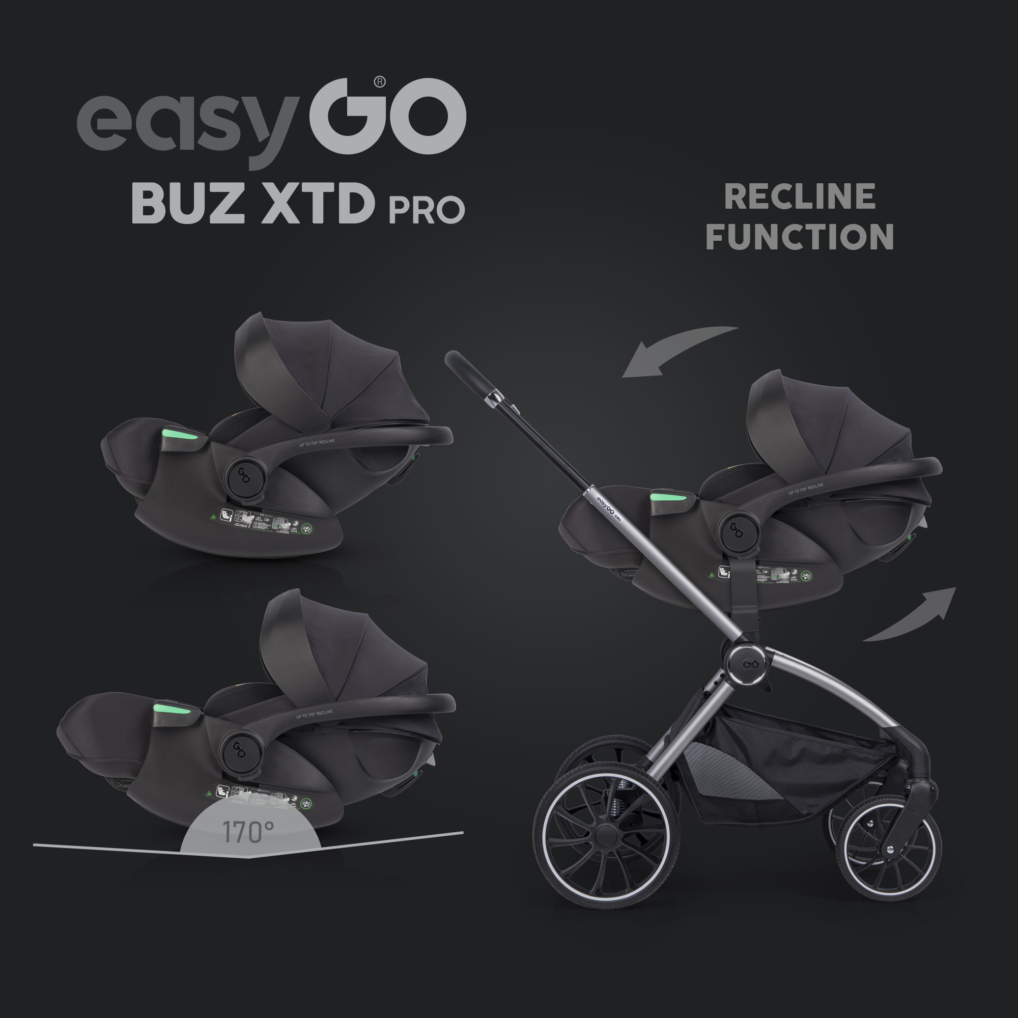 Die Variante BUZ XTD Pro bietet zusätzlich eine Liegefunktion, mit der sich der Autositz in eine tragbare Babywanne für den Kinderwagen verwandeln lässt.