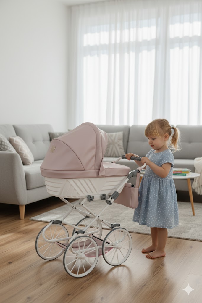 Puppenwagen von KUNERT ist ein hochwertiges Modell, das speziell für kleine Liebhaberinnen von Stil, Design und Rollenspielen entwickelt wurde. Gefertigt aus erstklassigem Lederimitat, überzeugt er durch elegante Optik, sorgfältige Verarbeitung und hohe Langlebigkeit. Er vereint klassischen Charme mit moderner Funktionalität – ein echter Premium-Puppenwagen.