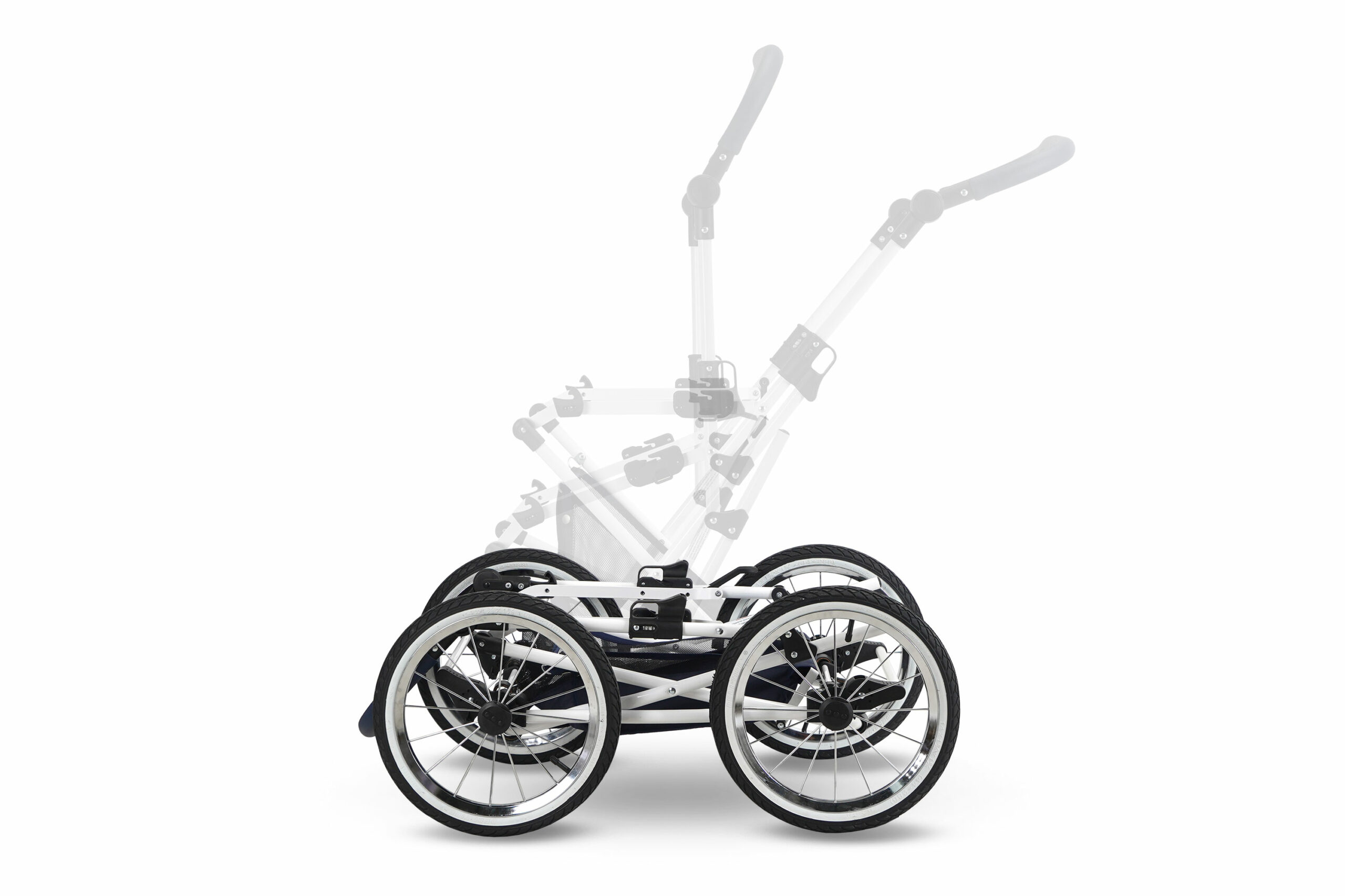 Zusätzlich besteht die Möglichkeit, eine Autoschale mithilfe eines Universal-Adapters auf dem Gestell zu montieren. Dadurch lässt sich der Kinderwagen flexibel als Travel-System im Alltag und auf Reisen nutzen.
