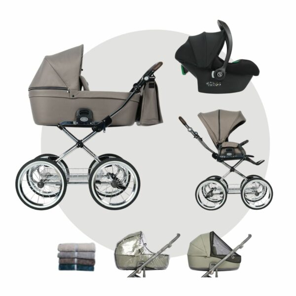 - Design: Der Retro Style wird bei diesem hochwertigen Kinderwagen neu interpretiert. Zertifizierte Materialien von höchster Qualität garantieren eine optimale Performance. Mit dem umfangreichen Zubehör verleihen Sie Ihrem Kinderwagen einen individuellen Touch in bester Retro-Manier.