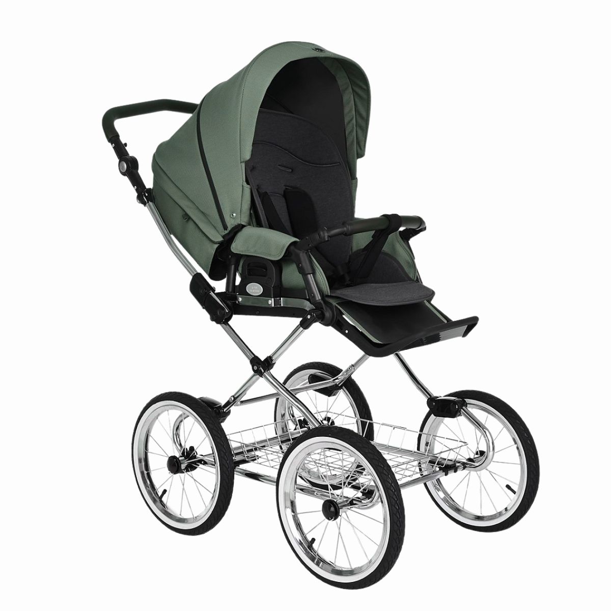 Ein Klassiker für echte Stil-Liebhaber. Dieser Nostalgie Kombikinderwagen sticht durch klassische Eleganz und hervorragende Federung mit klassischer Wipp-Funktion hervor.