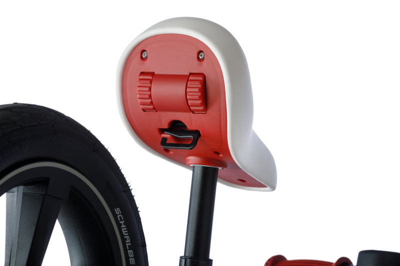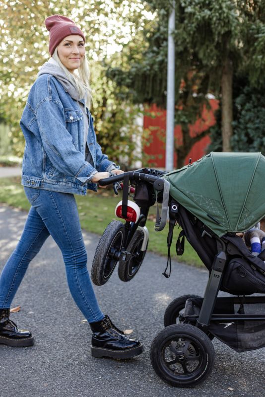 inklusive Schlaufe, versteckt unter dem Sattel – zum Transport am Kinderwagen oder zum Tragen