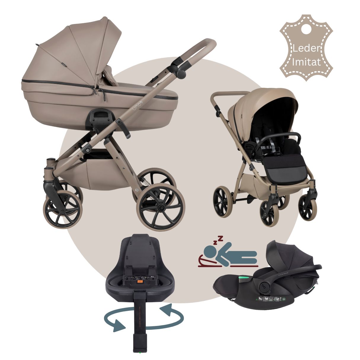 TUTIS UNO 6+ | MEGASET Kinderwagen mit Babywanne + Sportwagen + Autoschale + Isofix drehbar